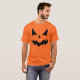 T-shirt alaranjado da cara assustador da abóbora com design preto.