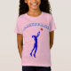 Fonte azul e camisa de moça de basquete da garota com o nome da sua atleta e o número da camisa na parte de trás!