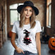 Osez l'élégance mystérieuse avec ce t-shirt au design audacieux ! Le centre de l'imprimé met en scène une bouteille de potion de sang, riche en détails fascinants. Le contraste entre le rouge sanguin de la potion et les nuances sombres du chapeau crée une esthétique à la fois élégante et surnaturelle.