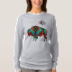Este é um "Um de um tipo" único T-Shirt de Manga Longa de Buffalo, de Buffalo! Ele apresenta uma Silhueta de Buffalo no Sudoeste Galopante e Sol no Sudoeste em Turquesa, Laranja e Negro!