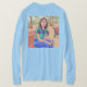 Camiseta Wifey Long Sleeve Este é um T-Shirt Wifey. A camiseta é uma camiseta azul-clara de manga longa. A imagem foi criada com arte gerativa. A arte mostra uma ilustração cômica de uma mulher sentada em uma bancada de parque. Ela está sorrindo. Há árvores e outros bancos de parques na imagem. A palavra Wifey está na imagem em roxo. A imagem e a Wifey estão na frente e atrás da camiseta. Você pode alterar a imagem com o botão Personalizar. Você também pode mudar a Wifey com o botão Personalizar.