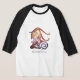 Camiseta Básica, Mangas Raglan 3/4, Branco/Preto, Adulto M