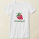 Morango vermelha grande com haste/folhas verdes sobre o texto verde: Menina da morango