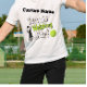 A Tênis do [NOME PERSONALIZADO] vigiando a camisa. O nome deve ser mudado para se adequar a qualquer pessoa que estiver vestindo a camisa. Há também uma silhueta de um tênis macho na parte inferior esquerda do design, assim como uma ilustração de uma bola de tênis na parte inferior direita. Esta camisa também está disponível em um casal de outras cores. Muitas dimensões e estilos.