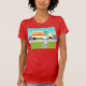 Se você tem sede para um meio século moderno de design, este T-Shirt Retro Small Town Milkman é para você! O estilo de 1960, design de arte minimalista, apresenta um fazer dedicado, milkman nas suas rondas matinais. O louro está vestindo calças brancas leitosas, camisa e chapéu com uma gravata de arco preto, cinto e calçados. Este entregador de cálcio e vitamina D está caminhando pela calçada da frente, carregando o fornecimento semanal de leite fresco e saudável em garrafas de vidro. O jornal da manhã ainda está na calçada. Não se preocupe. Só são permitidas boas notícias nesta cidade! A calçada é cercada pelo tipo de grama verde encontrada apenas em pequenas cidades e subúrbios. Há também uma cerca branca de picete. Na rua, vemos o doce passeio do leiteiro! É um caminhão de leite amarelo cremoso com uma faixa vermelha no lado e uma inscrição vermelha que diz, "DAIRY". No lado oposto da rua, vemos um céu aqua e as silhuetas azuis claras de cedros. Este desenho de kitschy parece uma cena tirada de uma velha televisão. Tragam o bolo amarelo com glacé de chocolate — o bolo oficial de todas as donas de casa de televisão e suas famílias afortunadas! Construir ossos fortes nunca teve um gosto tão bom!