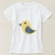 Uma camiseta confortável e na moda com um gráfico simples e encantador de um pássaro. A design mostra um pássaro amarelo com uma asa azul escura e pés, e um solteiro de olho redondo, tudo em uma ilustração minimalista, de estilo plano. Esta camiseta é perfeita para observadores de pássaros, amantes da natureza, ou qualquer um que goste de designs simples e doces.