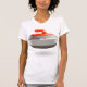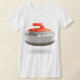 Curling é um esporte tão divertido e interessante. Requer muita habilidade. A pedra-curling é o equipamento principal e esta design é de uma pedra-curling fina. Ele tem uma pega vermelha e uma base de cinzas. Esta design de pedra coalhada parece excelente nesta t-shirt feminina. Perfeito para si mesmo ou como presente