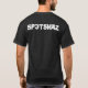 T-shirt com insígnias de um russo na parte dianteira com o Spetsnaz escrito abaixo dele e o Spetsnaz escrito na parte traseira.