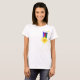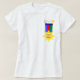 Um t-shirt branco da boneca com uma medalha de SuperMum, feita da colagem de papel pintado à mão, unido aparentemente com um pino de segurança.