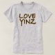 " AME YINZ" no preto e no ouro na parte dianteira do t-shirt da senhora - excelente para todo o fã de Pittsburgh.