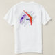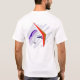 Um t-shirt branco simples com as asas do logotipo de Rogallo colocadas sobre o nimple esquerdo e de uma grande versão do logotipo colocado na parte traseira
