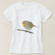 T-shirt com a foto do pisco de peito vermelho europeu (rubecula do Erithacus) que empoleira-se em um ramo fino