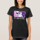 T-shirt de Pickleball da liga principal das mulheres: "BATIDA COMO UMA MENINA!" (Logotipo cor-de-rosa e roxo na camisa preta)