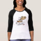 Camiseta feminina mangas raglan 3/4 da Bella+Canvas, Branco/Preto, Adulto G