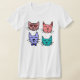 Um chá divertido colorido com quatro rostos de gatos. Um gato está vestindo óculos de sol. Camisa divertida para qualquer amante de gato.