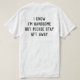 Engraçado Camisa-T dos Homens de Distanciação Social - "Eu sei que sou bonito, mas por favor, fique a 1,5 m de distância." Editar opções disponíveis.