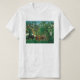 T-shirt exótico da paisagem de Henri Rousseau. Pintura a óleo em canvas desde 1910. O pintor francês Henri Rousseau caiu no amor com cenas tropicais durante seus viagens do mundo. A paisagem exótica é uma de suas pinturas famosas da selva do primitivist que feauturing os macacos que jogam na floresta. Árvore alaranjada do froman do cair de dois macacos que bate a fruta para baixo a seus amigos abaixo, quando petiscos maiores de um macaco em uma laranja próximo. A folha tropical é rica, densa, e verde, caracterizando os lírios brancos e outras flores tropicais. Um presente bonito para fãs de Henri Rousseau, de pinturas da selva, de paisagens tropicais, de primitivism, e do art. francês.