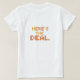 Uma camiseta feminina feita de algodão macio e respirável, oferecendo um ajustado relaxado mas lisonjeiro. A camisa está disponível em uma versátil cor branca, com um colar clássico e mangas curtas. Em todo o peito, o slogan "Eis o acordo" é impresso ousadamente em letras negras elegantes. A fonte é limpa e moderna, com uma pequena ênfase na palavra "acordo", dando-lhe uma vibração confiante, sem disparates. O design geral é simples, mas impactante, fazer-o como uma peça de excelente para traços casuais ou como uma camada de instrução sob uma jaqueta.