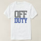 Relaxe em uma t-shirt quando estiver longe do trabalho. Mostre ao mundo que está fora de serviço. A mensagem da camisa diz: Off-Duty. Fora do trabalho e fora do serviço.