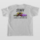O T-Shirt tem o Design CSCMC 2023 Car Show na parte traseira e o novo logotipo do estado da palmeira do solteiro na parte frontal. A palavra "FUNCIONARIOS" está na parte de trás da camisa.