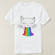 T-shirt Kawaii. Trendy personalizou um gato sorridente com arco-íris. Feliz dia bonito.