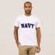 A camiseta masculina é mostrada em branco com texto que lê Marinho. Personalizar este item ou comprar como.