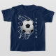 Esta camiseta infantil é mostrada com um impressão de bola de futebol. Marinho de cores Personalize esta camisa ou comprar como está.