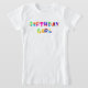 Traga uma t-shirt à aniversariante que ela adorará vestir. Com um logotipo colorido de aniversariante em um design de splash do arco-íris, isso vai tornar o dia especial deles um pouco melhor.