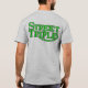 Este T tem um bolso na parte dianteira completa com o logotipo triplicar-se da rua e um espaço para seu nome ou todo o texto. Igualmente ostenta um grande logotipo triplicar-se da rua na parte traseira.
