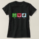 Uma t-shirt preta com um sinal de paz, um coração e um piano.