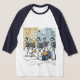 Camiseta Básica, Mangas Raglan 3/4, Branco/Preto, Adulto G