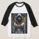 Camiseta Básica, Mangas Raglan 3/4, Branco/Preto, Adulto M