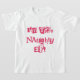 Camisas de Natal humorísticas, camisas de suor, canecas, cartas, sacos de tote, chaveiros e muito mais com texto rosa quente que diz "Eu sou o Elfo Malvado!".