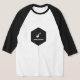 Camiseta Básica, Mangas Raglan 3/4, Branco/Preto, Adulto M