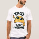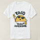 Traga diversão para o seu guarda-roupa com esta camiseta 'Taco 'Bout Awesy'. É o melhor chá para amantes do taco e entusiastas do trocadilho, apresentando um legal taco com óculos de sol dando um sinal de "paz". Perfeito para excursões casuais, comemorações de Taco na terça-feira, ou apenas em casa. Esta camisa vai ser um início de conversa e uma maneira humorística de mostrar seu amor por tacos deliciosos.