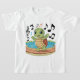 Uma tartaruga marinha alegre cantando com um microfone cercado por notas musicais, perfeita para amantes da música e arte marinha.