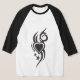 Camiseta Básica, Mangas Raglan 3/4, Branco/Preto, Adulto M