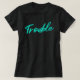 Let your mischievous side do the talking with this smooth teal “Trouble” design on a sleek black tee. Stylish and full of subtle attitude, this shirt is perfect for the laid-back rebel, the low-key loudmouth, or anyone who makes a little mischief look good. Soft. Bold. Just a little chaotic—like you.