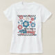 Um design do estilo "Tendy Groovy" para o Dia da Independência de 4 de julho com flores sorridentes, que diz: "Terra doce da liberdade".
