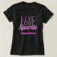Esta camisa tem uma citação simples em brilho de cor rosa: "LIVE LOVE Sparkle". Palavras para viver. Adicione sua própria legenda para tornar isso exclusivo e pessoal. O padrão (em um script cor-de-rosa correspondente) é "Equipe Diamond!"