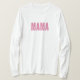 Design simples baseada em texto: "MAMA" em letras maiúsculas cor-de-rosa. Perfeito para anunciar a iminente maternidade ou para anunciar o nascimento do bebê. Presente de Dia de as mães excelente. Também disponível: "PAPA", "BABY", "GRANDPA", "GRANDMA", "BIG SIS", "BIG BRO", "BEST AUNTIE" e "BEST UNTIE", por isso, transforme-o numa coisa de família e consiga tudo.