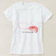 Camisa cor-de-rosa com texto personalizado preto. Um camarão solteiro com antenas longas e giratórias é o design para camisetas, camisas de suor ou qualquer roupa. Uma linha de texto impresso preto por baixo pode ser usada para qualquer texto, em tantas linhas quantas forem necessárias - ainda ajustando o design. Anuncie uma empresa, personalize com um nome ou remova o texto para o vazio do comprar.