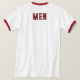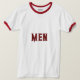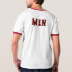 Texto ou Nome de Homens ou Palavra com Texto de Cor Vermelha Escura e O Estilo é Camiseta de Ringer Básica, o Tipo de Cor é Branco/Vermelho e o Tipo de Tamanho é Adulto 2X.