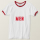 Texto ou nome masculino com texto vermelho colorido e o estilo é T-Shirt de toque básico, o tipo de cor é branco/vermelho e o tipo Tamanho é Adulto 2X. Camisetas bonitas e confortáveis para masculinos.