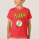 Check out this iconic logo for The Flash, featuring his name in telescopic speed style over the bright yellow lightning bolt in circle icon!