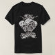 The image features three stylized skulls positioned side by side, each with menacing facial expressions. Above the skulls is a crown with sharp details and a flaming design, suggesting power and authority. Below the skulls is an abstract pattern that seems to represent reflections or shadows. The art style is aggressive and detailed, with strong lines and bold contrasts, creating a sense of intensity and mystery.