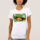 Esta bela camisa de senhoras mostra uma fotografia de uma bela borboleta tropical. Essa espécie é chamada de Borboleta Longwing (Heliconius hecale). Tem lindas manchas laranja em cada asa. O resto da asa é preto e tem padrões com manchas brancas. Vem da América do Sul. A fotografia foi tirada usando macrofotografia para um resultado incrivelmente detalhado.