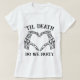 Procurando a maneira perfeita de mostrar seu apoio ao seu casamento gótico? Não olhe mais que a camiseta personalizada da damas de honra! Esta camisa apresenta um design de casamento de conto de fadas escuro com o texto de Til Death Do We Party acima do coração e Til Death Do We Part abaixo dele. Perfeito para a festa de solteira, esta camisa certamente fará com que todos fiquem no clima por uma noite de diversão. E quem não ama um bom presente de noiva? Nossas t-shirts personalizadas são a maneira perfeita de mostrar aos seus amigos e familiares o quanto se importam com o seu próximo casamento. Peça a sua hoje e junte-se à diversão!
