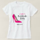 Uma t-shirt para uma festa de solteira. Com um salto alto, calçado a rosa quente. Festa de solteira escrita em fonte de tipografia de tendência.