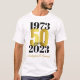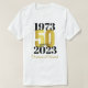 Uma camiseta ousada e marcante do 50º aniversário. Esta camisa especial do marco 50 anos consiste na data do casamento e na data atual na tipografia negra - com os 50 destacados em uma fonte de efeito ouro. Adicione nomes para um presente personalizado - ou vista à festa de casamento do ouro!